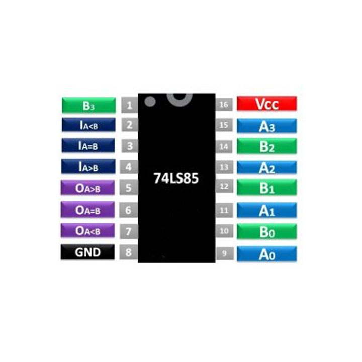 74LS85 DIP16 là một IC so sánh số 4 bit (4-bit Magnitude Comparator) thuộc họ TTL 74LS.