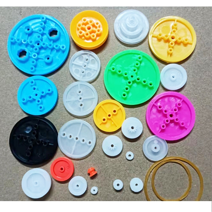 ✔️ Số lượng: 26 chi tiết (bao gồm nhiều loại ròng rọc nhựa với kích thước khác nhau, trục quay, con lăn, dây curoa/dây kéo...).
