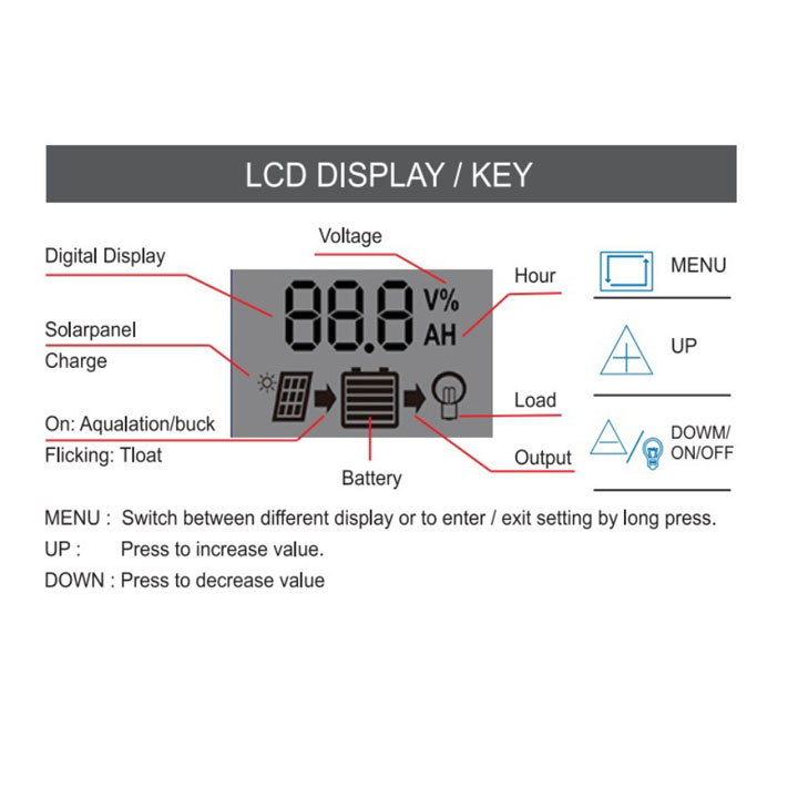 Phím Chức Năng Bộ Sạc Xả Pin Mặt Trời 12V 24V 30A