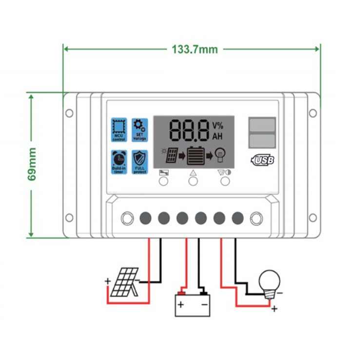 Kích Thước Bộ Sạc Xả Pin Mặt Trời 12V 24V 30A