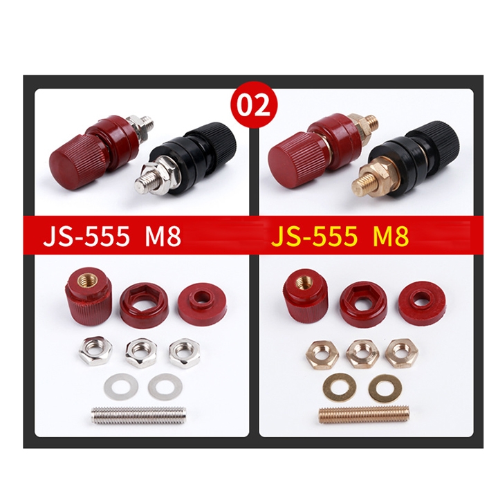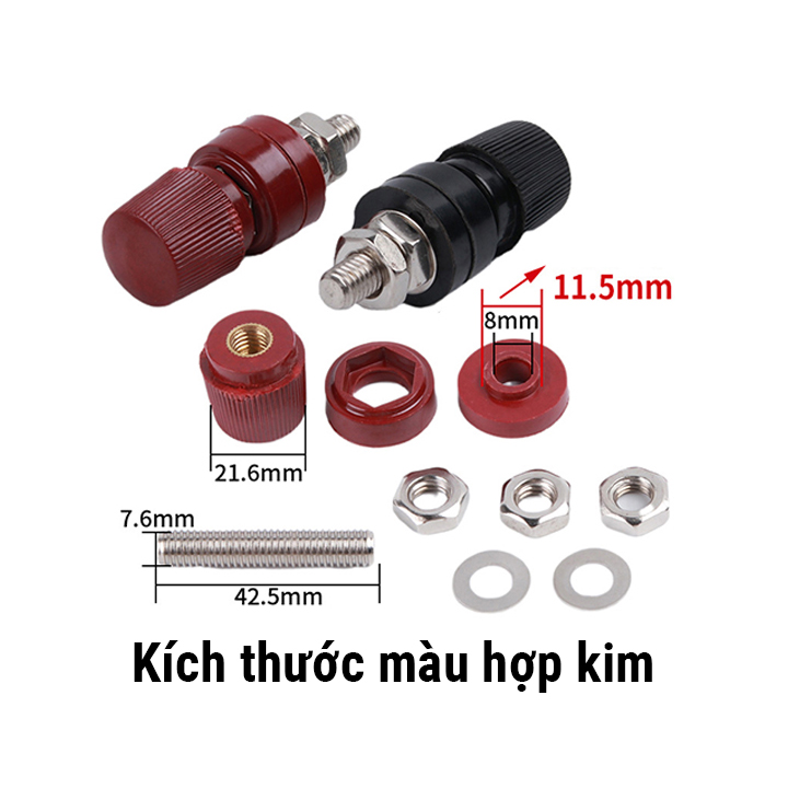 Cọc nguồn 555 100A chân 8mm là đầu nối chuyên dụng cho dây nguồn to, tải lớn, đảm bảo an toàn và độ bền khi truyền dòng cao.