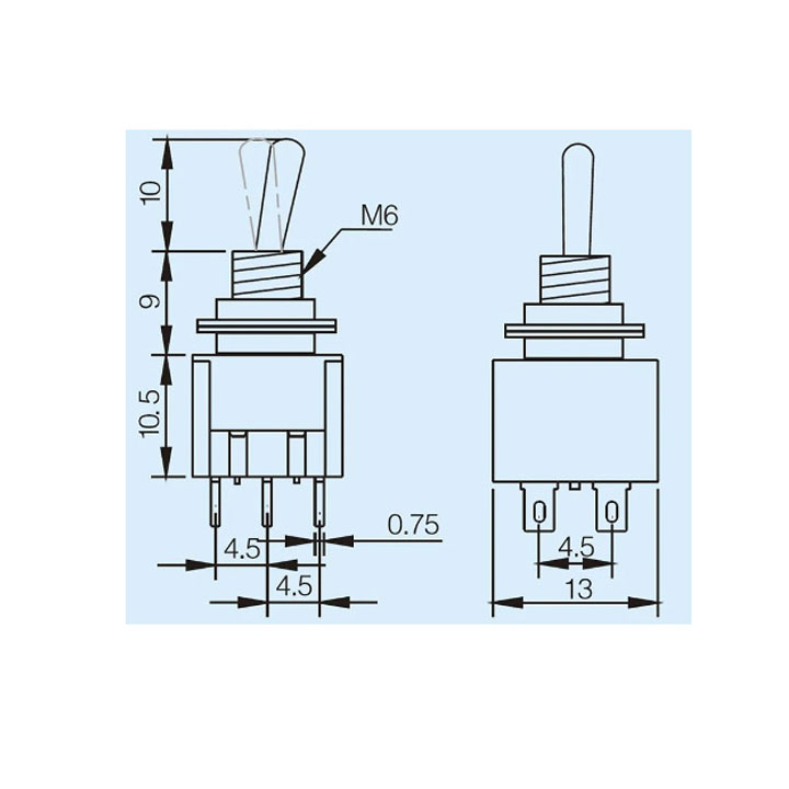 MTS-202 là loại công tắc gạt 2 chiều, với khả năng chịu dòng 2A ở 250VAC và 6A ở 125VAC. Đây là công tắc DPDT (Double Pole Double Throw), nghĩa là nó có thể chuyển mạch 2 đường tín hiệu độc lập qua 2 vị trí ON-ON.