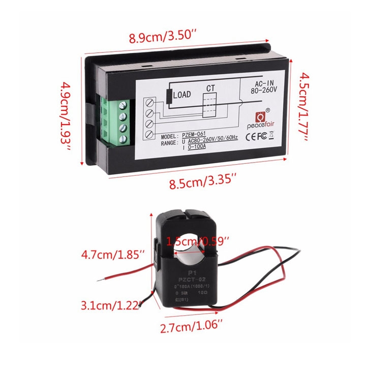 Công Tơ Điện Tử PZEM-061 80VAC-260VAC 100A