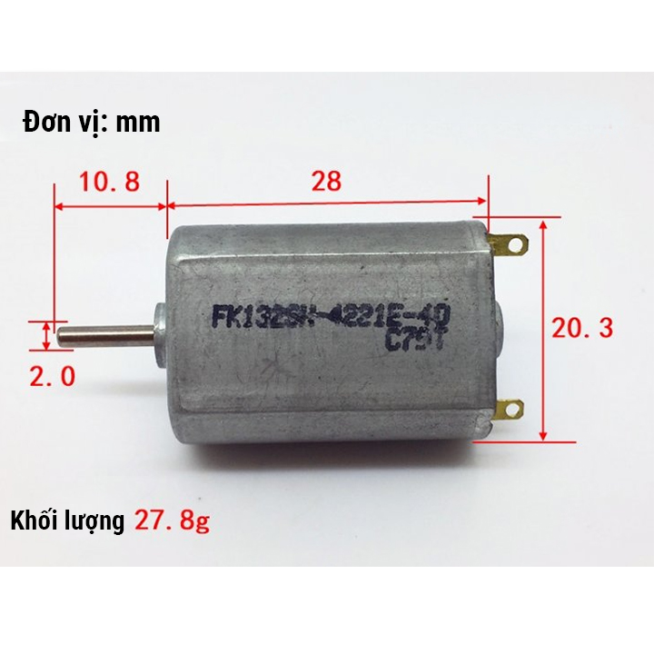 ✔️ Trục motor: thường đường kính 2 mm, dài 8–10 mm (tùy loại).