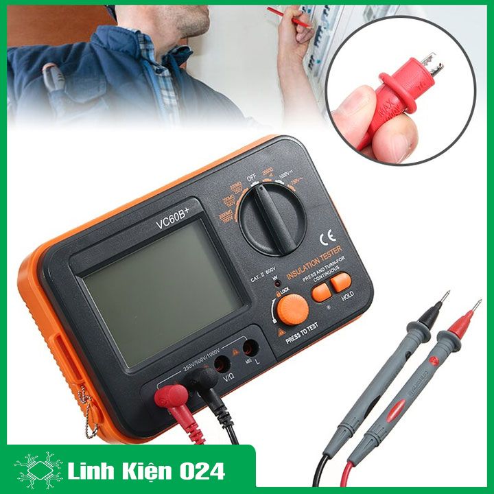 Đồng hồ đo điện trở cách điện kỹ thuật số, máy đo điện trở đất Megohm VC60+