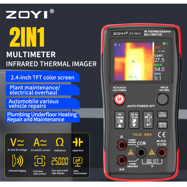 Đồng hồ vạn năng ảnh nhiệt 2 trong 1 ZT-R01, Đồng hồ vạn năng kỹ thuật số chuyên nghiệp có camera IR
