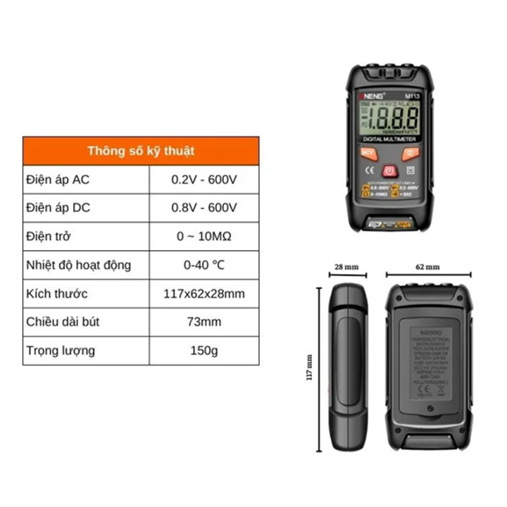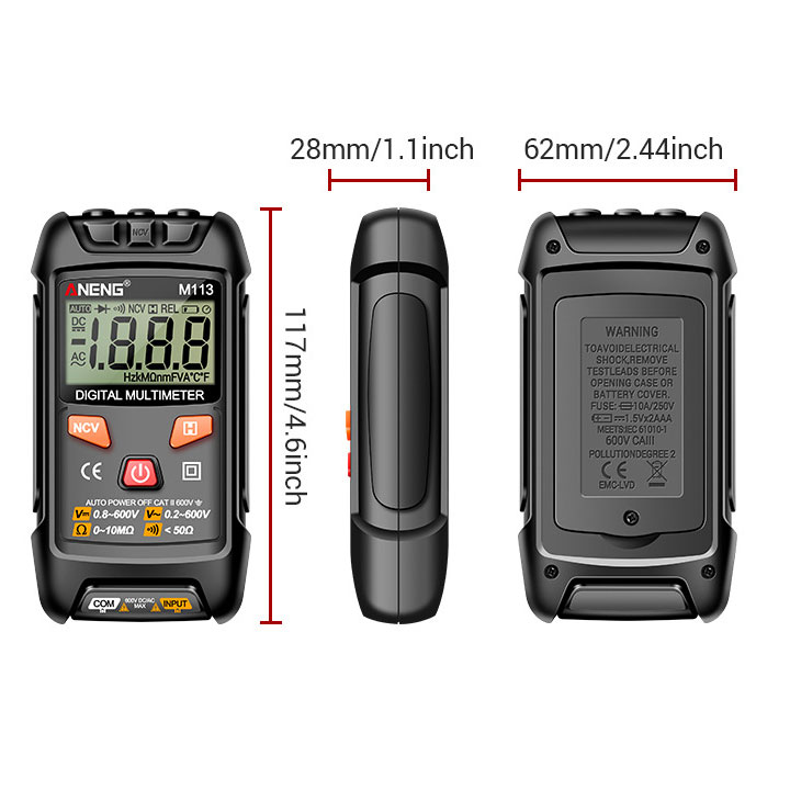 Kích Thước Đồng Hồ Vạn Năng Kĩ Thuật Số ANENG M113