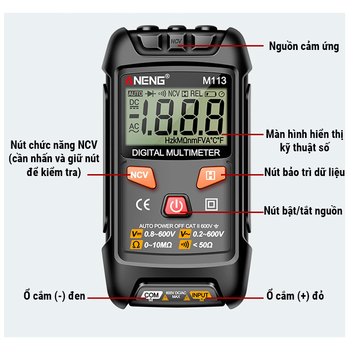 Nút Chức NăngĐồng Hồ Vạn Năng Kĩ Thuật Số ANENG M113