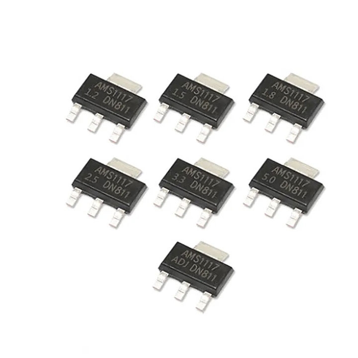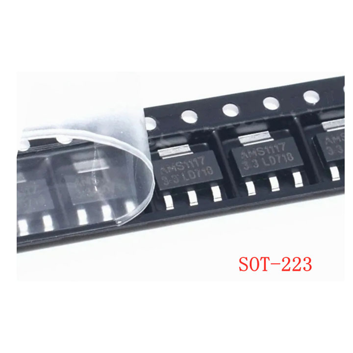 IC nguồn AMS1117 (loại vỏ SOT-223) là một IC ổn áp tuyến tính (Linear Voltage Regulator) rất phổ biến trong các mạch điện tử, thường dùng để giảm và ổn định điện áp từ nguồn cao hơn (thường là 5V hoặc 12V) xuống các mức điện áp thấp hơn (thường là 3.3V hoặc 1.8V).