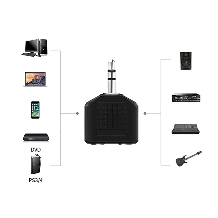 ✔️ Jack chia 3.5mm không xử lý tín hiệu, mà chỉ đơn thuần là chia dây – cả hai thiết bị được cấp cùng một tín hiệu âm thanh.