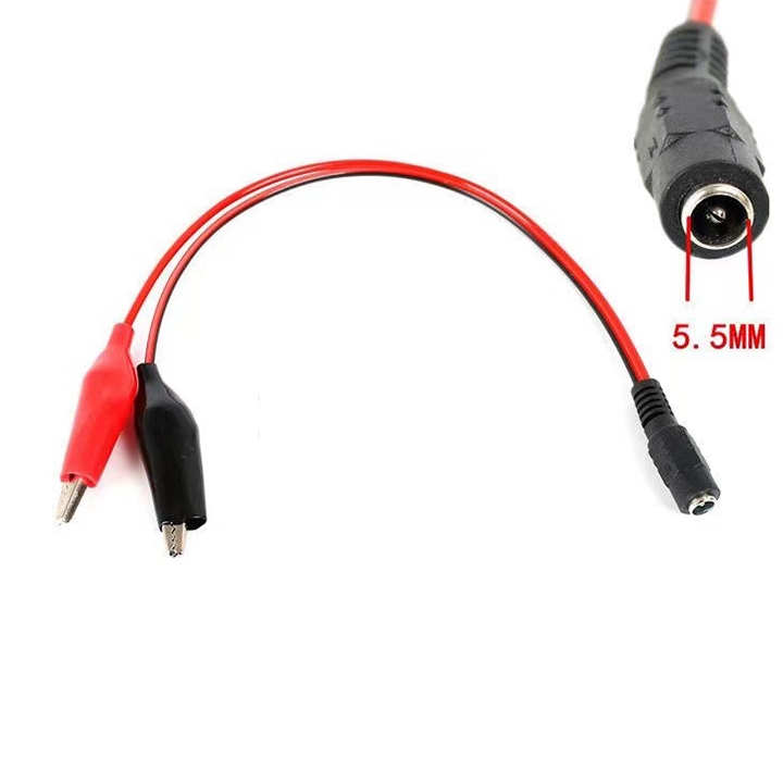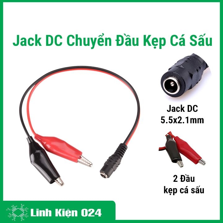 Jack DC chuyển đầu kẹp cá sấu là một loại dây/cáp kết nối điện, được thiết kế để chuyển đổi từ đầu cắm nguồn DC (thường là jack DC 5.5mm x 2.1mm hoặc 5.5mm x 2.5mm) sang 2 đầu kẹp cá sấu (một kẹp màu đỏ và một kẹp màu đen).