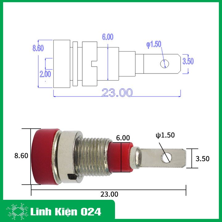 Kích Thước Jack Kết Nối J40004 2mm Bằng Đồng