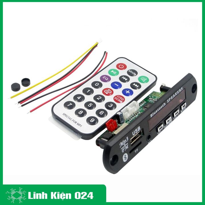 ✔️ Mạch giải mã MP3 USB/TF/AUX/Bluetooth 7-12VDC có chức năng giải mã tín hiệu từ USB hoặc thẻ nhớ hoặc sóngFM sau đó khuếch đại ra âm thanh 2 kênh, với công suất mỗi kênh từ 3 - 5W. Mạch được thiết kế với mặt nạ đi kèm cùng remote điều khiển hồng ngoại giúp dễ dang điều chỉnh chức năng của mạch, ngoài ra có thể tinh chỉnh chức năng bằng các nút nhấn được tích hợp sẵn trên mạch. Mạch có thể kết nối bluetooth với các thiết bị khác. Mạch nhỏ gọn đầy đủ tính năng, rất thích hợp cho DIY stereo.