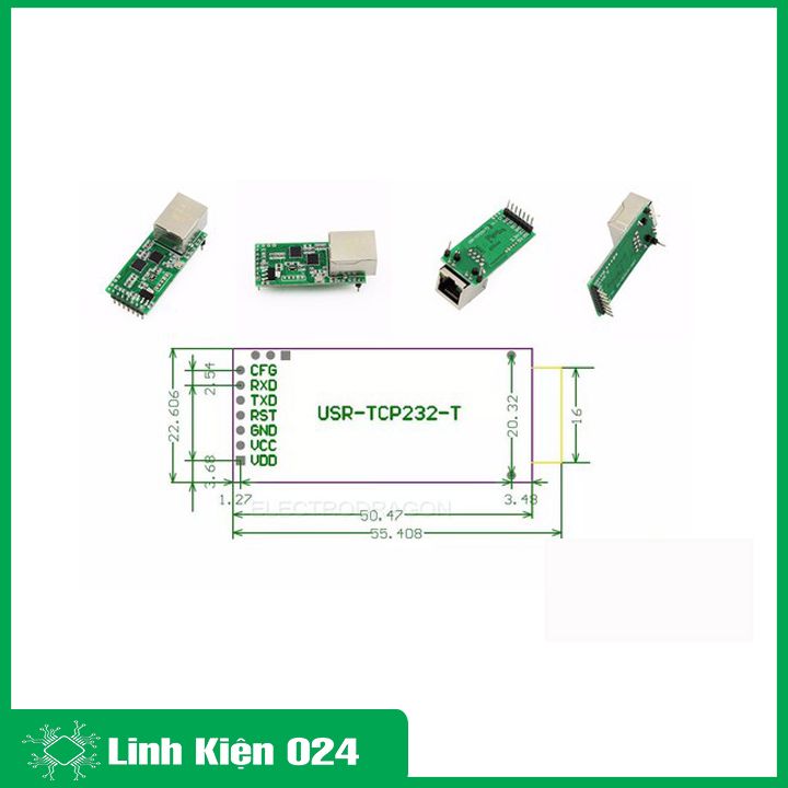 ✔️ Module chuyển đổi RS232 sang Ethernet (RJ45) USR-TCP232 dùng chuyển đổi tín hiệu từ RS232 sang Ethernet dùng giao thức TCP hoặc các gói tin UDP, module kích thước nhỏ, tiêu thụ điện năng thấp, được hỗ trợ xử lý tốc độ, chính xác cao, ổn định tuyệt vời.