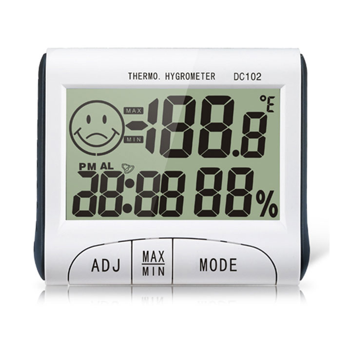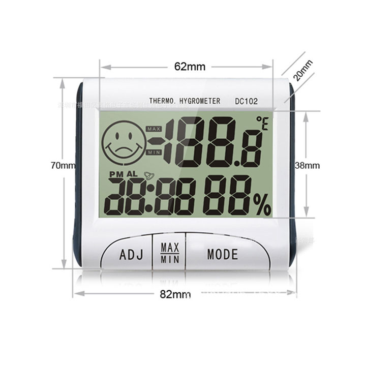 Đồng Hồ Đo Nhiệt Độ, Độ Ẩm DC102 là đồng hồ điện tử đo nhiệt độ và độ ẩm, sử dụng cảm biến tích hợp bên trong. Thiết kế nhỏ gọn, màn hình LCD dễ đọc, dùng phổ biến trong nhà ở, văn phòng, phòng nuôi cấy, tủ điện, trồng cây, tủ nuôi bò sát, v.v.