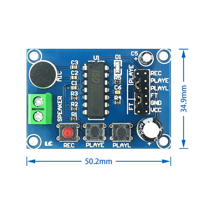 ✔️ Kích thước module ghi âm : 54 (mm) x 38 (mm)