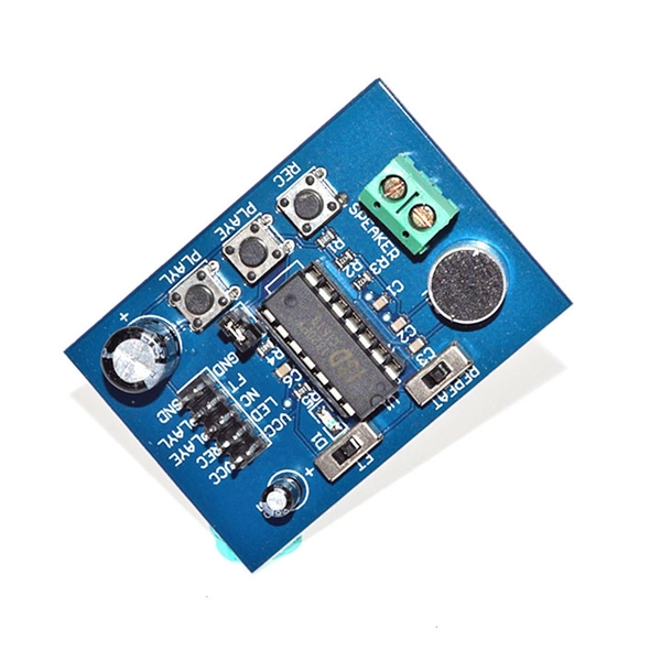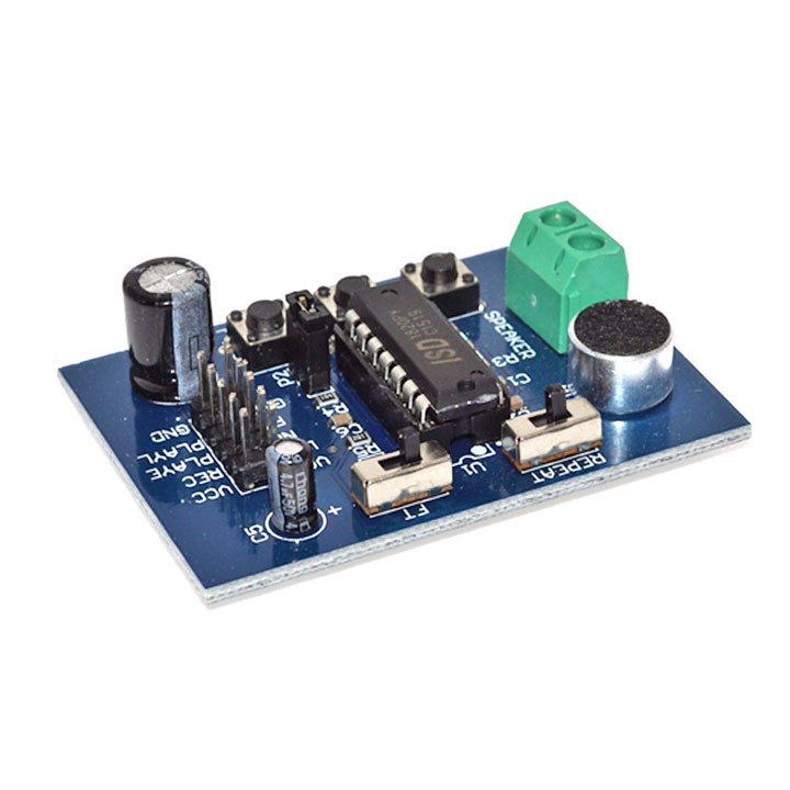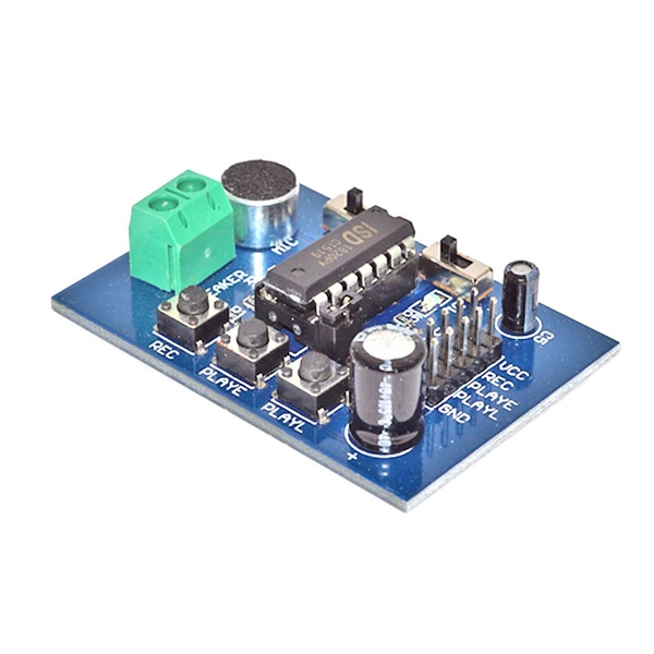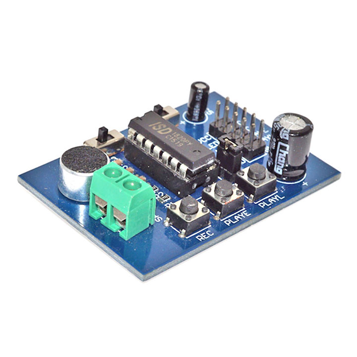 ISD1820 V1 là module ghi âm và phát lại âm thanh nhỏ gọn, dễ dùng, có thể ghi âm từ 10–20 giây (tùy jumper chọn), tích hợp micro và loa nhỏ, rất phù hợp cho các ứng dụng:
