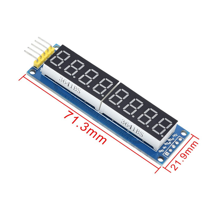 Đây là một module hiển thị LED 8 chữ số dạng 7 đoạn, sử dụng IC shift register 74HC595 để điều khiển các đoạn LED – rất phổ biến trong các dự án Arduino, STM32, ESP32, v.v.
