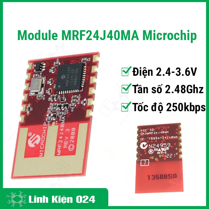 ✔️ MRF24J40MA là module RF 2.4 GHz tích hợp sẵn ăng-ten PCB, tuân thủ chuẩn IEEE 802.15.4, thích hợp cho ứng dụng ZigBee/MiWi công suất thấp, phạm vi ngắn đến trung bình.