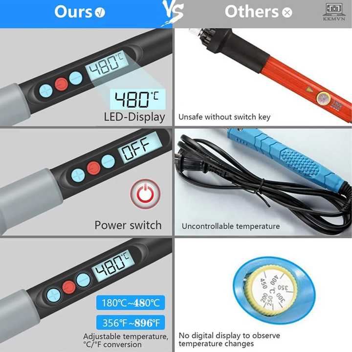 ➤ Công suất lớn 60W / 90W tăng nhiệt độ nhanh, thiếc ngấu đều cho mối hàn đẹp, bóng.