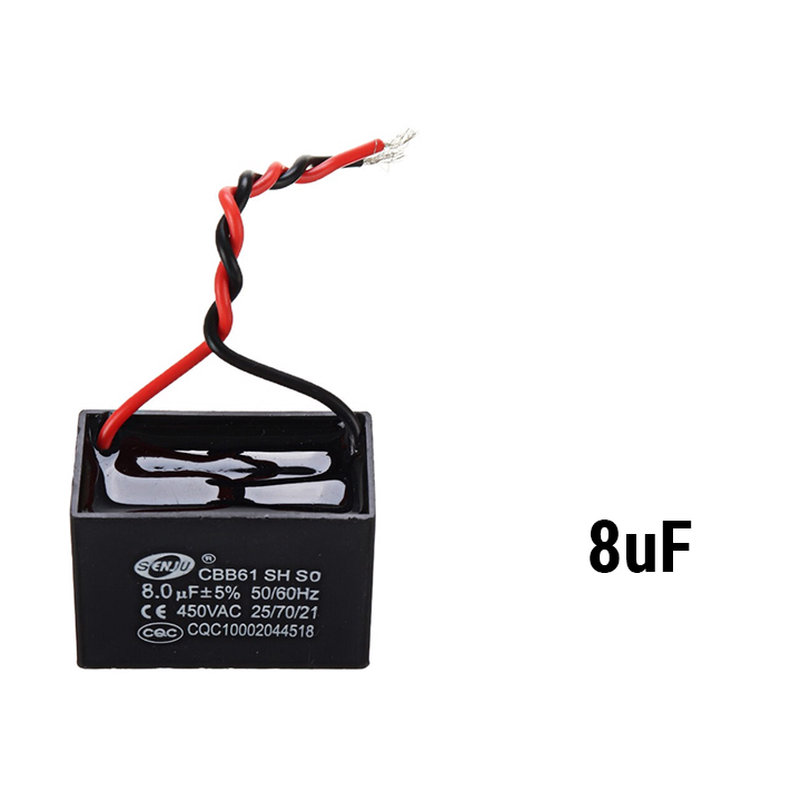✔️ Tụ 8uF thường dùng cho quạt bàn, quạt treo.