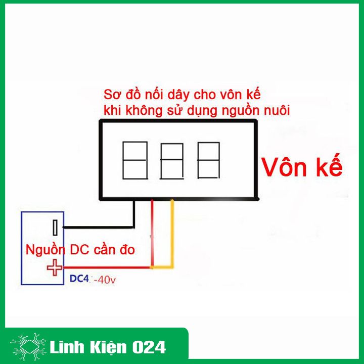 ✔️ Nếu không cấp nguồn riêng mà đấu chung dây đỏ với dây vàng thì vôn kế đo được điện áp từ 4-40VDC